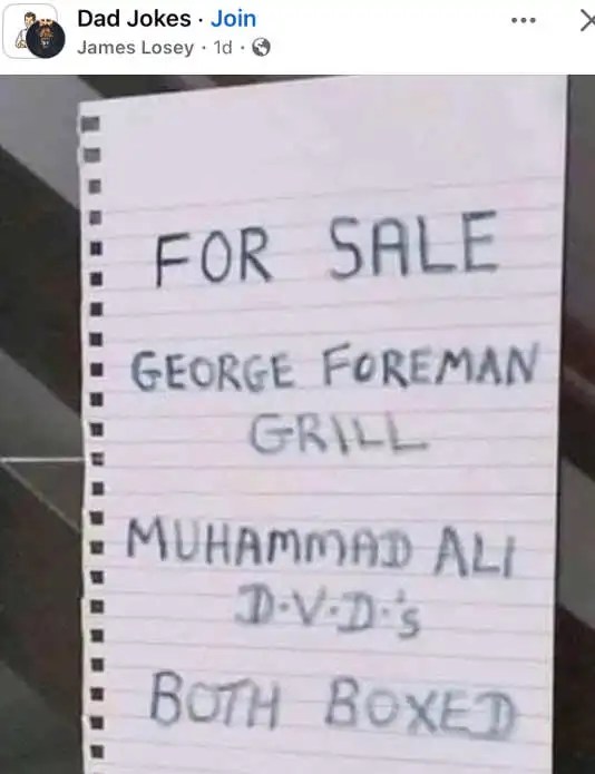 George Foreman and Mohammed Ali? I think that’s a grandpa joke. They both were way before today’s dads’ time.