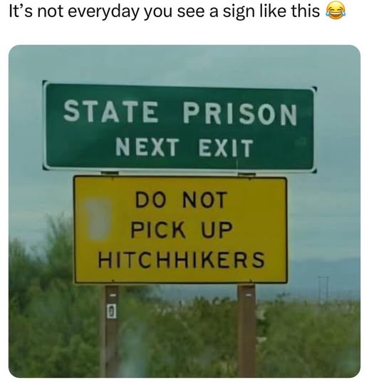I see that sign often near a youth correctional prison. Sometime I get escorted by if there’s a breakout.
