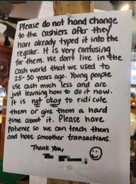 Right. I don’t know what’s more foolish. That a “Cashier” can’t count change… or that an EMPLOYER would trust such an individual WITH. THEIR. CASH. And don’t get me started on hiring anyone that cannot read CURSIVE… as I’ve had unbelievable experiences with THAT as well.