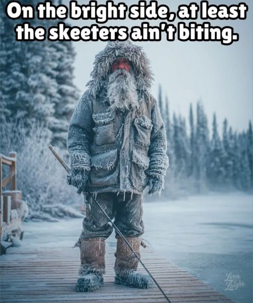 Been kinda chilly up here since Thanksgiving or so; highs in the -30’s….but the skeeters ain’t bitin’! ‘Bout time we had a normal winter….